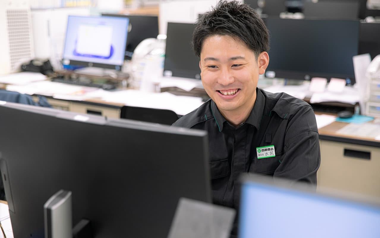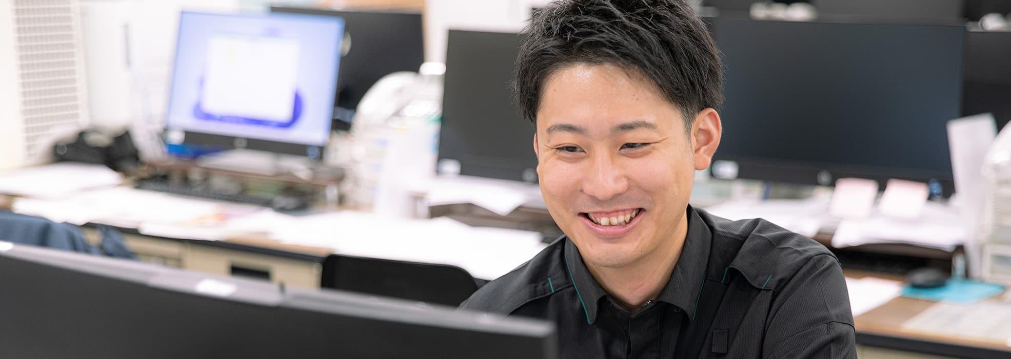 2020年4月入社。大阪府出身。毎月行われる報奨金を1年以上に渡って連続獲得した若きエース。真面目で熱心な人柄は顧客からの信頼も厚い。オフの時間は会社の同期や先輩後輩とバーベキュー、ゴルフなどをしてリフレッシュしている。
